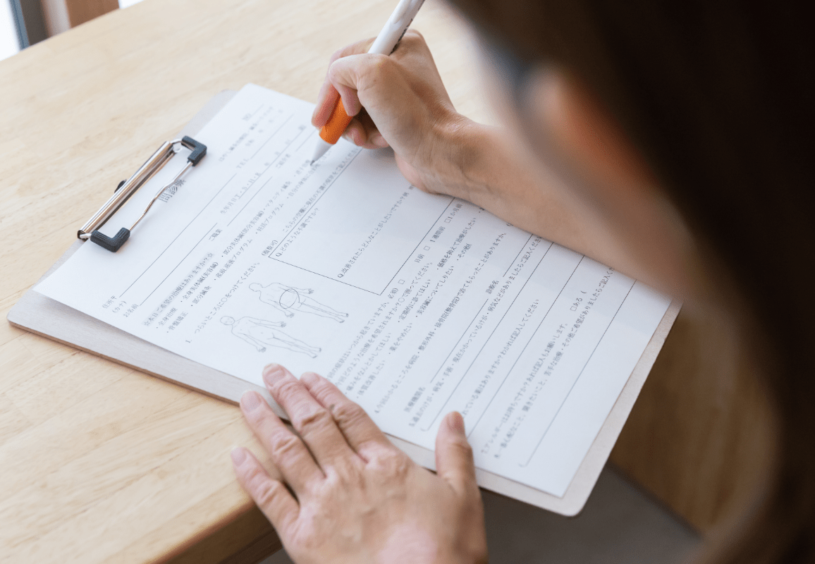 現状のお身体の状態を確認させて頂きます。